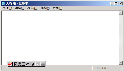 (3)安裝完畢后,我們打開“記事本”小程序做一個實戰檢測。按幾下鍵盤上的“Ctrl+Shift”組合鍵,切換到極品五筆輸入法狀態,如圖1-2所示。如果找不到的話,自己到控制面板中的輸入法去添加,這一點大家能搞定。