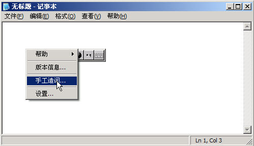 用鼠標在極品五筆的狀態條上右擊,在彈出的快捷菜單中選擇“手工造詞”命令,如圖1-3所示。