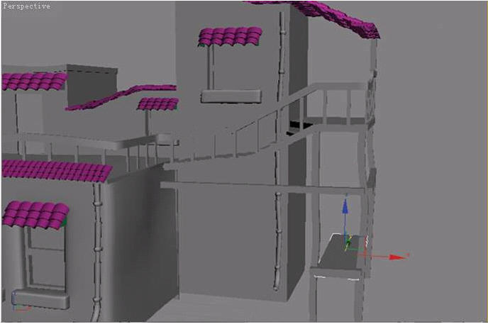 (17) 用基本幾何形體繼續(xù)添加一些房屋的細節(jié),如樓梯的橫秤和支撐房子的木桿等,效果如圖8-8所示。