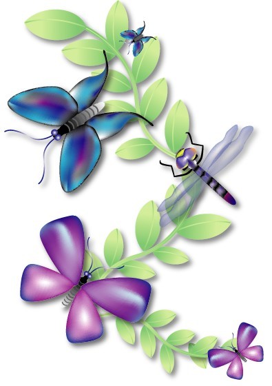 在繪制蜻蜓的時(shí)候,就是翅膀設(shè)置了透明,其它的方法同以上的制作方法,分解圖例如下:
