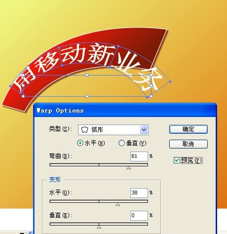 接下來是寫字,字好后執(zhí)行編輯/封套扭曲,數(shù)值如圖所示。