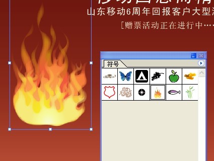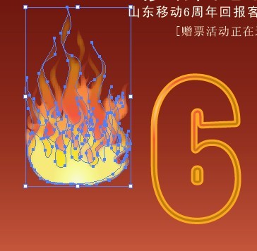 如圖示:在符號(hào)面板中將火符號(hào)拖到頁(yè)面中,執(zhí)行編輯/擴(kuò)展后,取消群組。寫上數(shù)字6,將6擴(kuò)展后設(shè)置輪廓寬度顏色等。