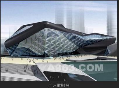 2003年,哈迪德的廣州歌劇院設計方案被采納,而她的另一個設計作品——北京SOHO城的物流港也已經開始在北京動工。扎哈.哈迪德的廣州歌劇院設計方案名為"冷峻雙礫"。2005年1月18日,這個歌劇院破土動工,它是繼北京國家大劇院和上海歌劇院后,中國的第三大歌劇院。廣州歌劇院外形整體看上去就像江邊的兩塊石頭,具有強烈的后現代特征。其灰黑的色調構成"自然、粗野"的原始造型,具有很強的質感,與周邊高樓林立的現代都市形象構成顯著對比。而歌劇院外部地形設計成跌宕起伏的"沙漠"形狀,順著高低不平的小路步入"峽谷"之中,再經室內合成光影的照射,讓人們感受奇特的藝術氛圍。
